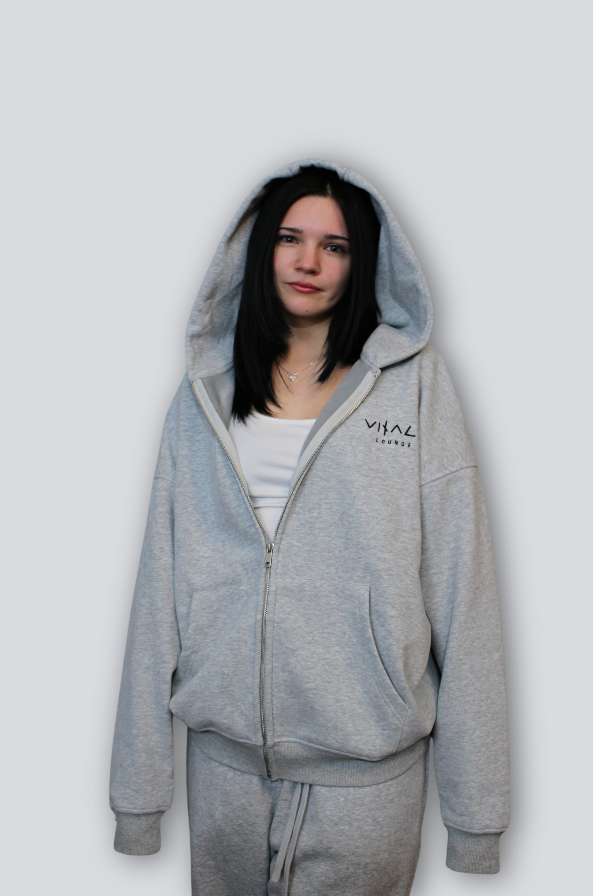 Featuring an oversized 3-panel hood, the Lounge Zip-Up offers maximum coverage with a sleek, structured silhouette. Whether you're running errands, heading to the gym, or simply enjoying downtime, this versatile design ensures you stay effortlessly chic no matter the occasion.